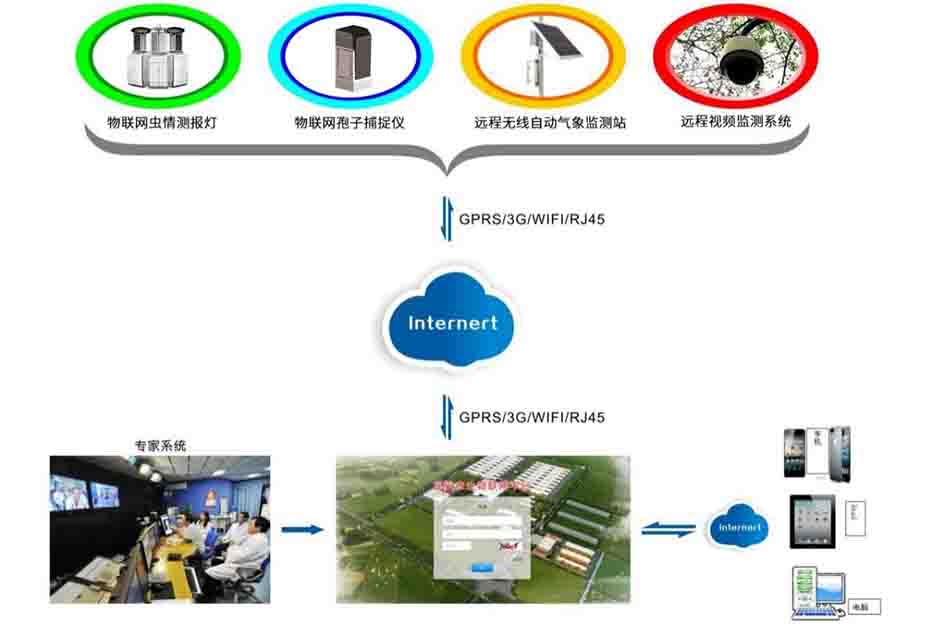 系統(tǒng)可自動(dòng)完成蟲情信息、病菌孢子、氣象信息的圖像及數(shù)據(jù)采集,通過(guò)遠(yuǎn)程無(wú)線傳輸,自動(dòng)上傳至云服務(wù)器,實(shí)時(shí)存儲(chǔ)及顯示蟲情、病菌孢子圖像,并通過(guò)圖像信息庫(kù)及技術(shù)分析功能,分析病蟲害數(shù)量變化,預(yù)測(cè)病蟲害的發(fā)生時(shí)間和趨勢(shì)。用戶可通過(guò)云平臺(tái)或手機(jī)APP實(shí)時(shí)查看數(shù)據(jù),遠(yuǎn)程管理設(shè)備。達(dá)到自治區(qū)、州、縣、鄉(xiāng)各級(jí)信息采集站無(wú)線傳輸、遠(yuǎn)程控制,信息數(shù)據(jù)共享,從而提高相關(guān)部門的病蟲害監(jiān)測(cè)防控能力。